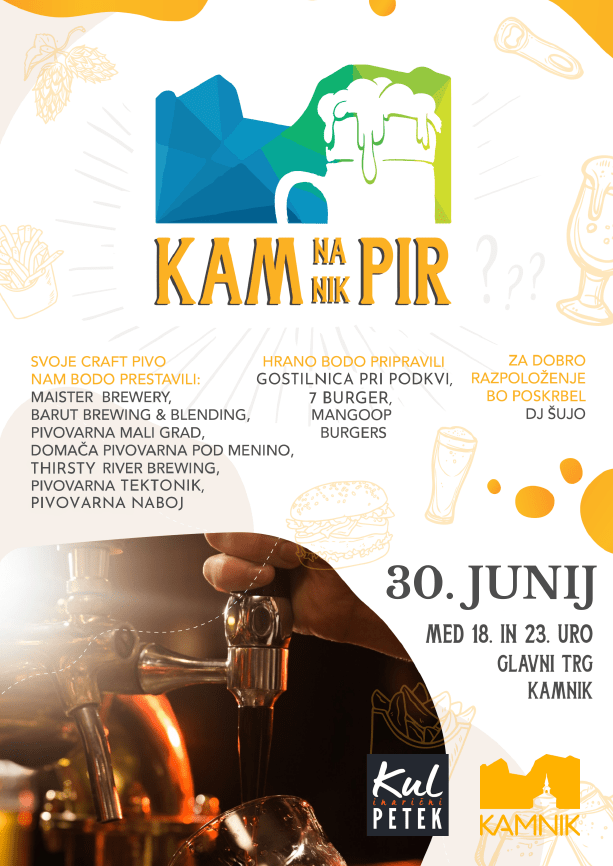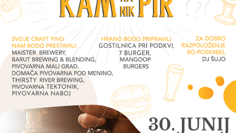 Svoje kraft pivo nam bodo predstavili Maister Brewery, Barut Brewing and Blending, Pivovarna Mali grad, Domača pivovarna pod Menino, Thirsty River Brewing, Pivovarna Tektonik in Pivovarna Naboj. Za nas bodo kuhali Gostilnica pri Podkvi, 7 burger, Mangoop burgers. Za dobro razpoloženje pa bo poskrbel DJ Šujo.